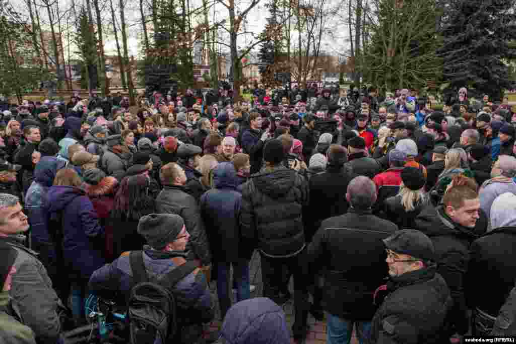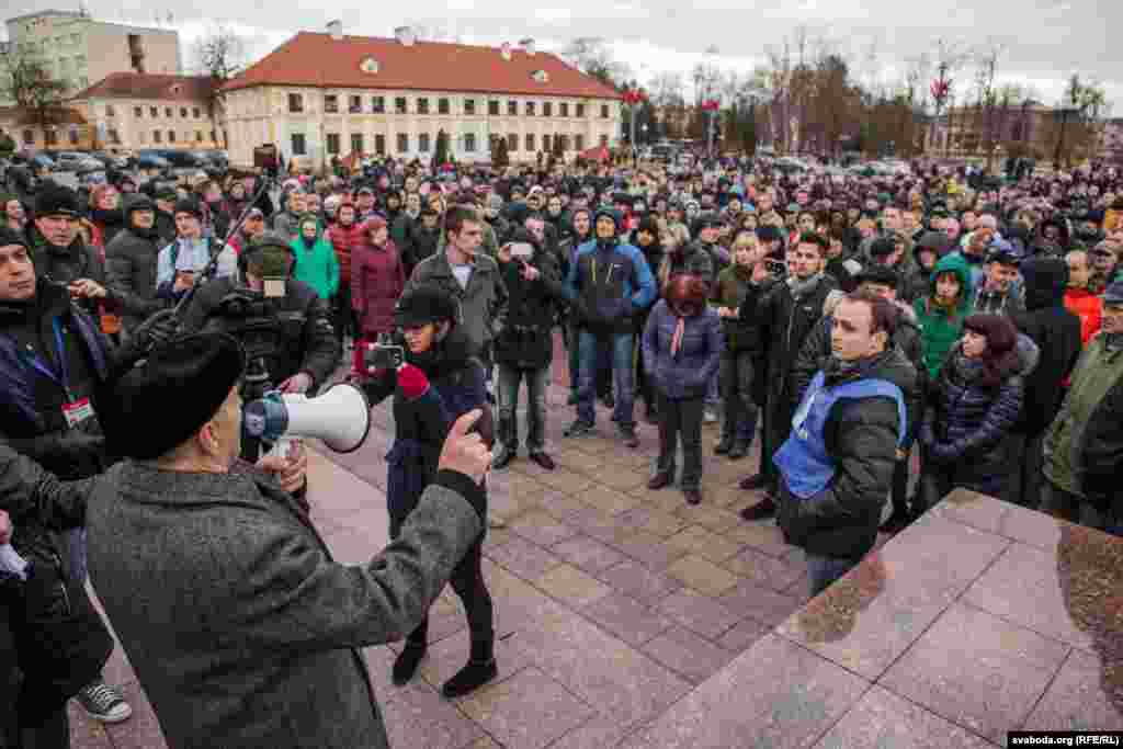 У Горадні на пратэст супраць дэкрэту № 3 выйшлі каля тысячы чалавек. Яна прайшлі з парку Жылібэра да будынку гарадзкой адміністрацыі на плошчы Леніна. На прапанову прадстаўніцы ўлады перайсьці з плошчы ў залю адміністрацыі пратэстоўцы адказалі адмовай.