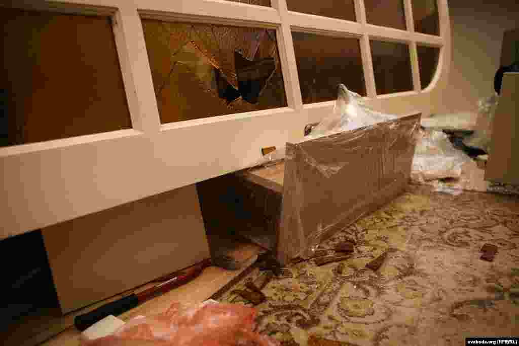 Падчас затрыманьня ў кватэры Ўладзімера Арлова, дзе брыгада Зьмітра Дашкевіча зьбірала кухню, сілавікі выламалі дзьверы і разьбілі ў іх шкло