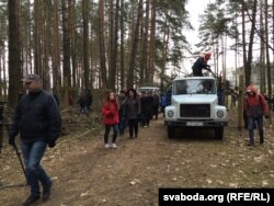 Напярэдадні ў Курапатах секлі дрэвы. Падчас талакі актывісты прыбіралі дрэвы. Ва ўрочышчы шмат тэхнікі.
