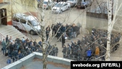 Увечары ж тут афармляюць затрыманых на акцыі. Затрыманыя стаяць пад мокрым сьнегам і дажджом тварам да сьцяны.