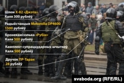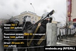 Выходзіць, што амуніцыя шараговага амапаўца без шчыта альбо стрэльбы можа каштаваць каля 2800 рублёў.