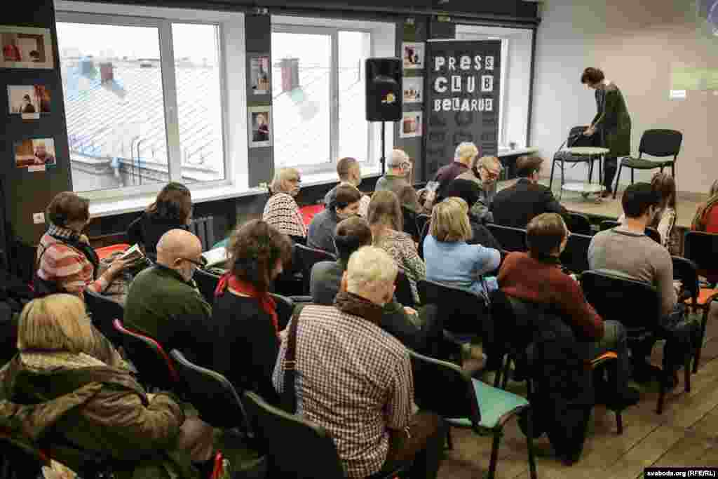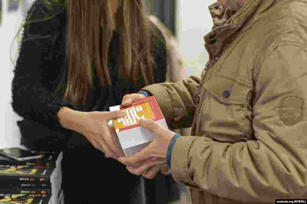 Кнігу «100 словаў» прэзэнтавалі ў менскім «Прэсавым клюбе» 27 красавіка. «100 словаў» — кніжная вэрсія праекту, які ладзіць Свабода ад 2014 году.