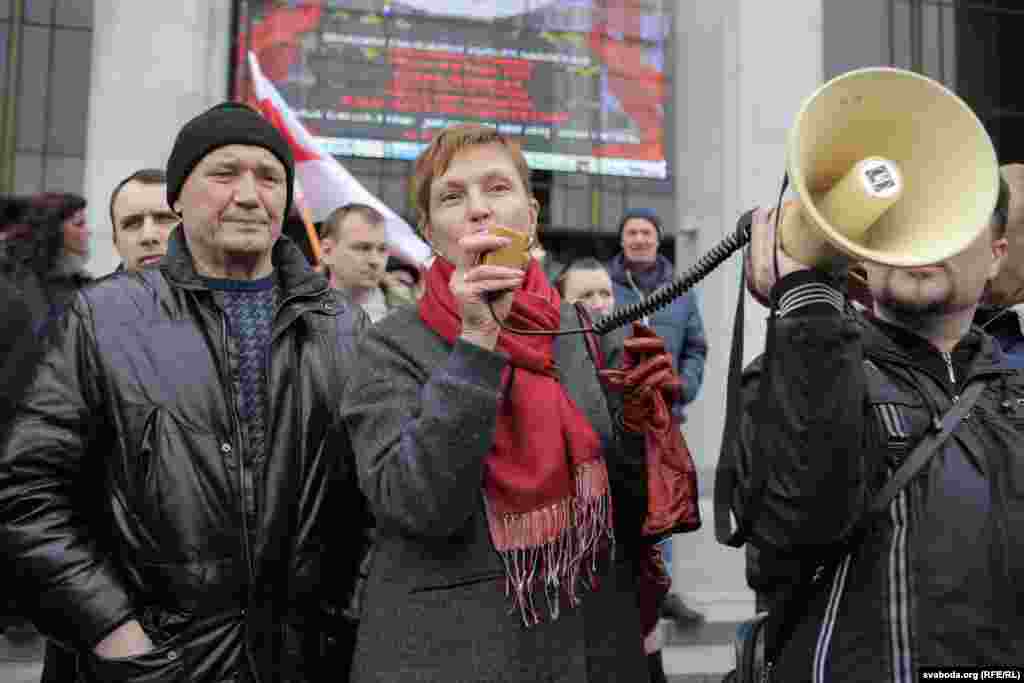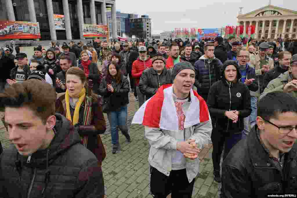 На плошчу прыйшлі палітыкі Ўладзімер Някляеў, Павал Севярынец, Вячаслаў Сіўчык, жонка затрыманага Статкевіча Марына Адамовіч, актывістка Ніна Багінская зь бел-чырвона-белым сьцягам, 84-гадовы прафэсар Мікола Савіцкі, актывісты Максім Вінярскі, Яўген Афнагель ды іншыя. Удзельнікі акцыі разгарнулі некалькі бел-чырвона-белых сьцягоў. Былі людзі і з афіцыйнымі чырвона-зялёнымі сьцягамі, а таксама з чырвоным савецкім. Міліцыянты заклікалі людзей разысьціся і пагражалі ўжываньнем фізычнай сілы і спэцсродкаў.
