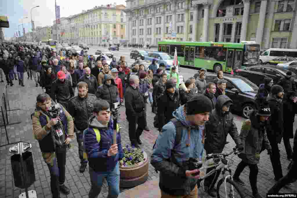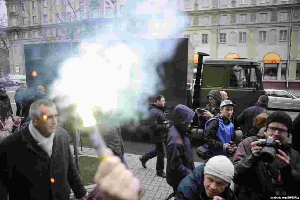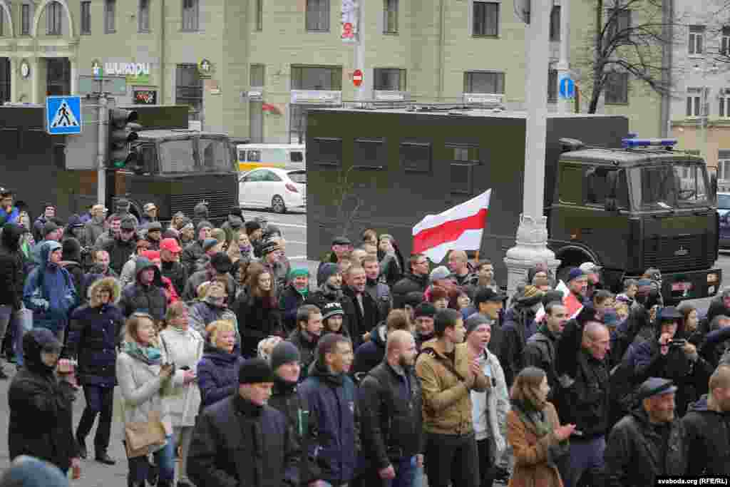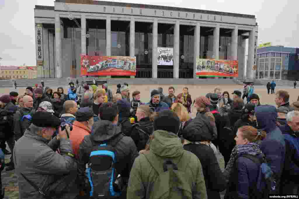 Нягледзячы на забарону, людзі пачалі зьбірацца на Кастрычніцкай плошчы, спачатку іх туды не пускала міліцыя. На суседніх вуліцах было заўважана шмат аўтазакаў, іншай спэцтэхнікі.