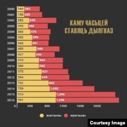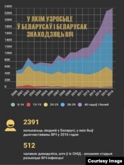 Павялічваецца сярэдні ўзрост тых, хто даведваецца пра свой дыягназ. Колькасьць 20—29-гадовых, у якіх дыягнастуюць ВІЧ, застаецца прыблізна на адным узроўні апошнія шаснаццаць гадоў. А колькасьць тых, каму ставяць дыягназ у 30 гадоў і пазьней, расьце. Паводле інфармацыі belstat.gov.by і belaids.net