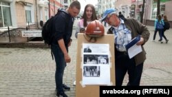 «Каску дасылаю як сымбаль абароны для Мікалая і напамін для ягонага бацькі, што варта захоўваць тэхніку бясьпекі на будоўлі, бо ён кіраўнік дзяржавы — гарант выкананьня законаў», — казаў каля стэнду, адмыслова зробленага дзеля зьбіраньня подпісаў, Аляксей Паўлоўскі.