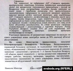 Як прыклад можна прывесьці Глыбоцкі малочнакансэрвавы камбінат, генэральны дырэктар якога В. Б. Дулінскі паведаміў, што «нанясеньне інфармацыі для спажыўца таксама і на беларускай мове лічым мэтазгодным. Мы падтрымліваем вашу прапанову аб унясеньні зьмяненьняў у дзеючы закон «Аб абароне правоў спажыўцоў». (фота 4)