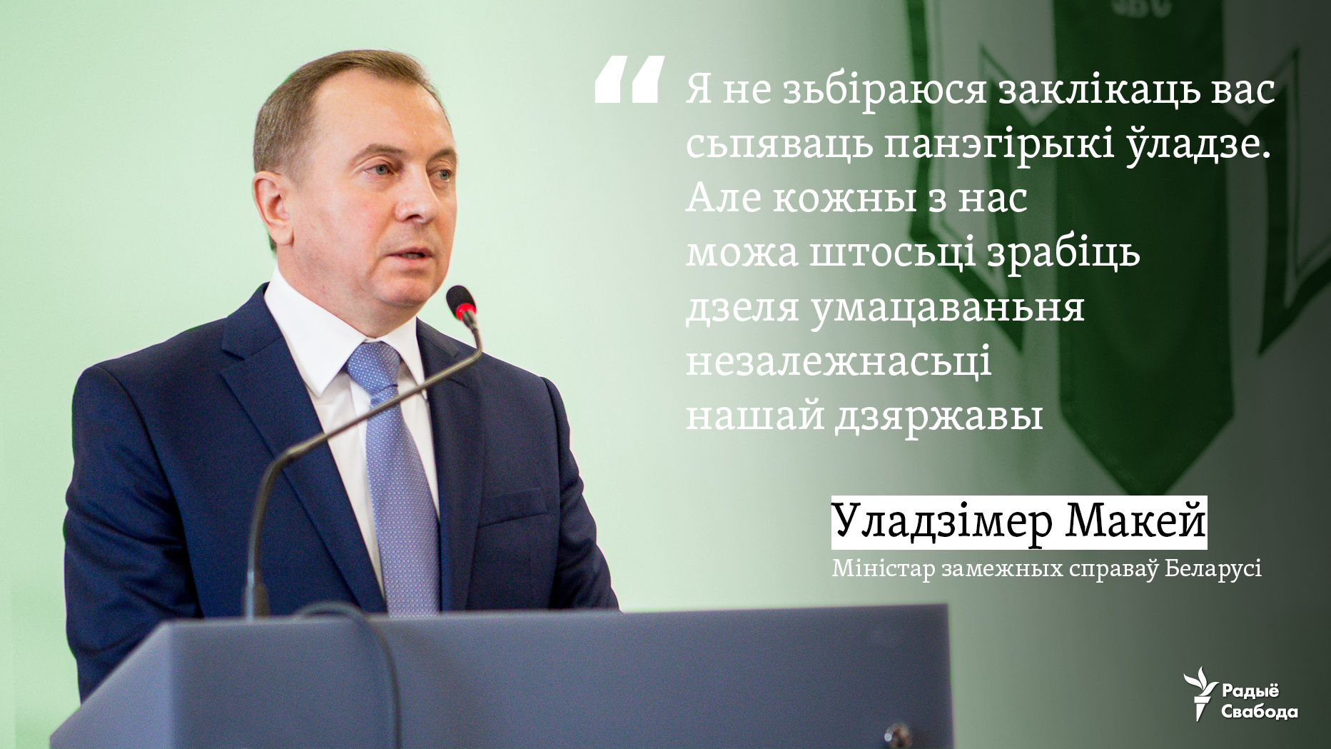 «Мы ўсе розныя. У кожнага з нас свой погляд на жыцьцё, на разьвіцьцё нашай краіны. Я не зьбіраюся заклікаць вас сьпяваць панэгірыкі ўладзе ці ўсхваляць кагосьці ці штосьці. У гэтым вы можаце вызначыцца самі. Але кожны з нас можа штосьці зрабіць дзеля нашай галоўнай мэты — умацаваньня незалежнасьці нашай дзяржавы. Гэта патрабуе ад нас аб’яднаньня перад зьнешнімі і ўнутранымі выклікамі».