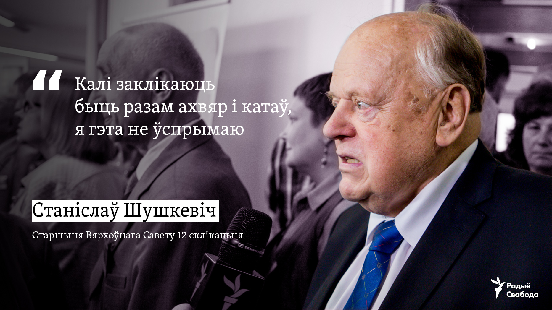 «Я згодны зь лёгікай Сьвятланы Алексіевіч, якая мне аднойчы сказала: „Напэўна, досыць Беларусі войнаў, досыць рэвалюцыяў“. Лёгіка канфрантацыі павінна адысьці ў мінулае. Мы павінны кіравацца лёгікай каапэрацыі. Мы павінны ад мэнталітэту процістаяньня перайсьці да мэнталітэту партнэрства. Вядома, гэта патрабуе пэўных намаганьняў».