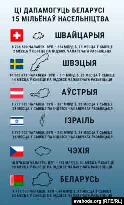 Свабода выбрала пяць краін, колькасьць насельніцтва якіх блізкая да беларускай, а паказчыкі валавога ўнутранага прадукту і індэксу чалавечага разьвіцьця вышэйшыя, чым у Беларусі.