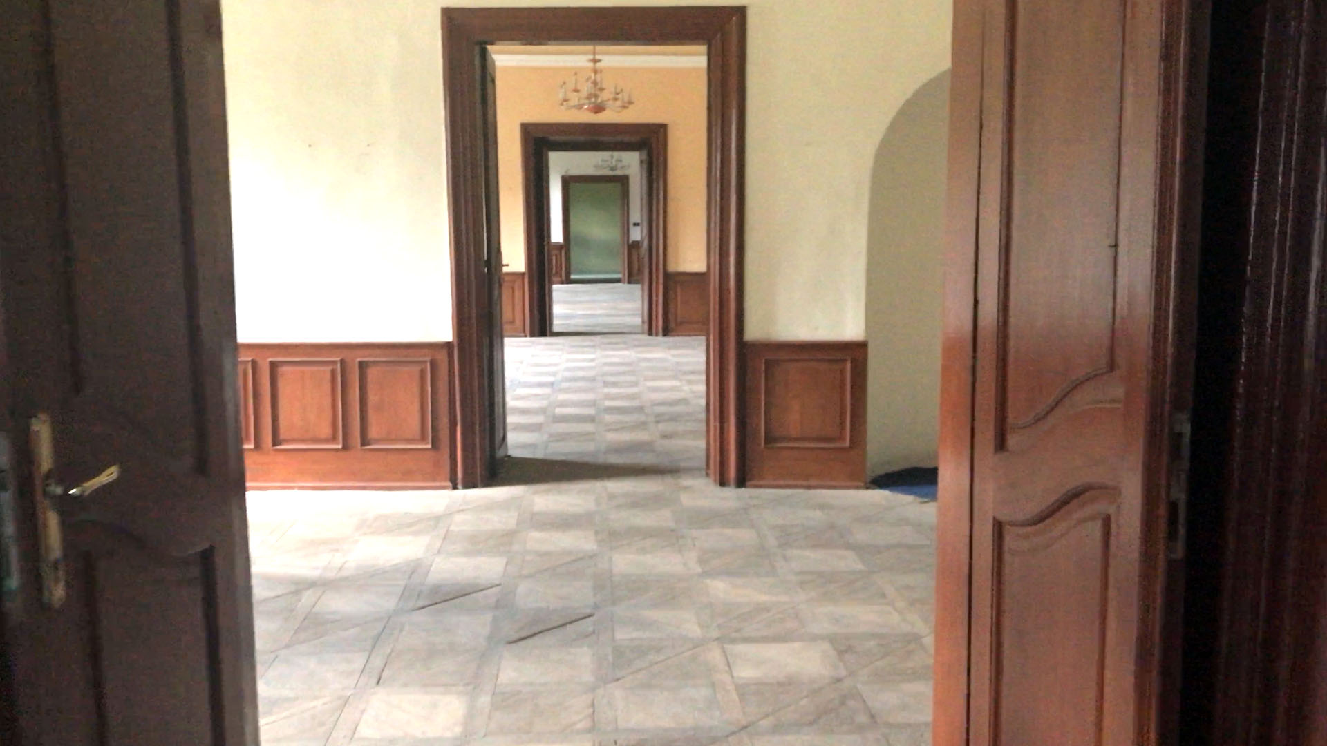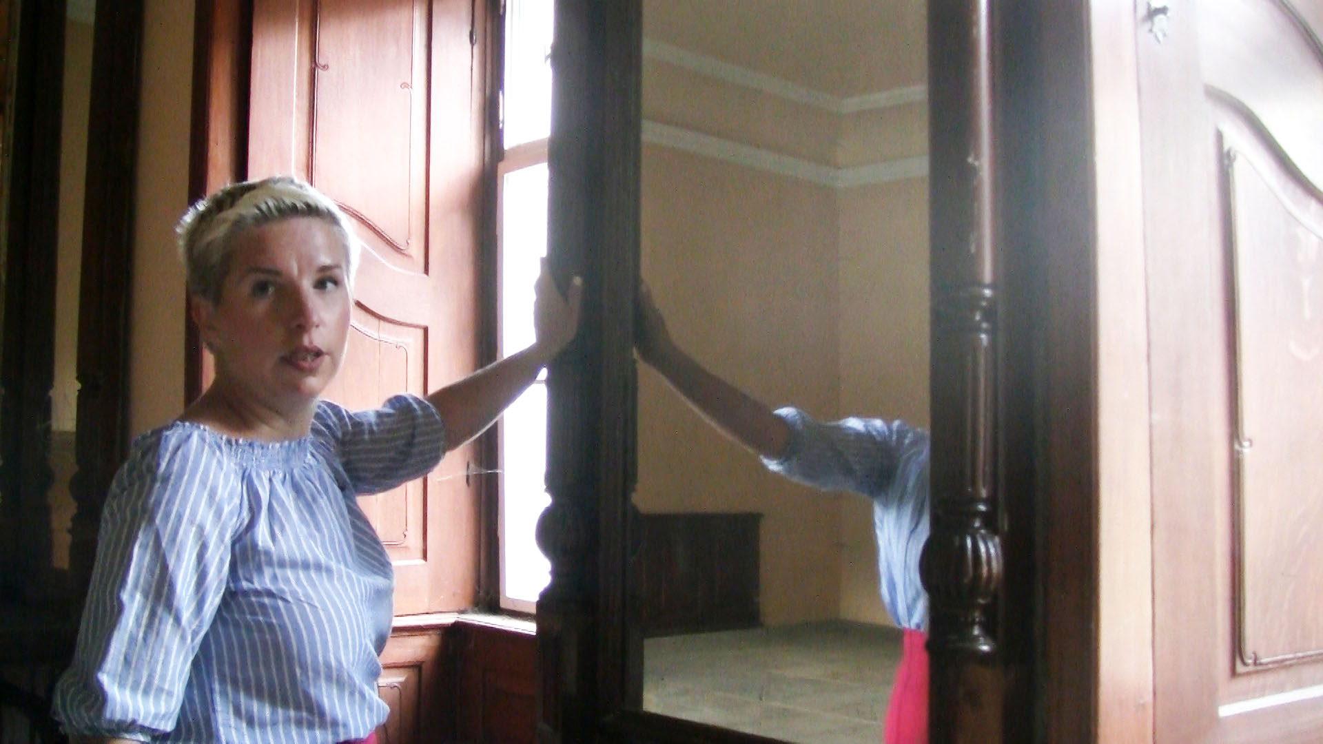 Маё самалюбства, як пакупніка, усьцешанае: я магу стаць уладальніцай колішняй прэзыдэнцкай рэзыдэнцыі. Праўда, тут за савецкім часам былі і казармы, і інтэрнат для рабочых уранавых руднікоў, і палітычная школа — сьляды гэтага будуць адчувацца яшчэ доўга. Пасьля 1989 замак вярнулі нашчадкам апошняга ўладальніка паводле рэстытуцыі, яны выставілі палац на продаж.