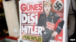 Ангела Мэркель стала асобнай мішэньню для такіх «качак», як «Ангела Мэркель — дачка Адольфа Гітлера» і «Мэркэль — фюрэр Чацьвёртага рэйху», якія гулялі па расейскіх СМІ некалькі гадоў таму, а цяпер зноў вярнуліся.