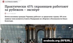 Расейскі тэлеканал «Звезда» распаўсюдзіў фэйкавую заяву аб тым, што «практычна 45% украінцаў працуюць за яе межамі». «Звезда» цытуе словы сябра камітэту Савету Фэдэрацыі па абароне і бясьпецы Вольгі Кавітыдзі.