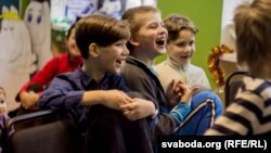 У нашым цэнтры дзеці кампэнсуюць патрэбу ў камунікацыі, у працы камандаю. Група робіць праект — максымум 10 чалавек. Мы займаемся па тры гадзіны на тыдзень, а чацьвертая гадзіна адведзеная на камунікацыю, можна і ў пляншэтах разам пасядзець, пагуляць у гульні. Летась, напрыклад, быў праект, калі група дзяцей 11–14 год стварала краіну. Пачынаючы зь ейных геаграфічных асаблівасьцяў, дзеці мусілі ўсё разьлічыць самі — якія будуць тэхналёгіі, мова, міністэрствы, асноўныя законы. Праект залучаў веды з усіх прадметаў. І гэта было складана. Бо яно толькі гучыць весела — напісаць канстытуцыю. Гэты праект, дарэчы, стваралі хоўмскулеры разам з тымі, хто ходзіць у школу.