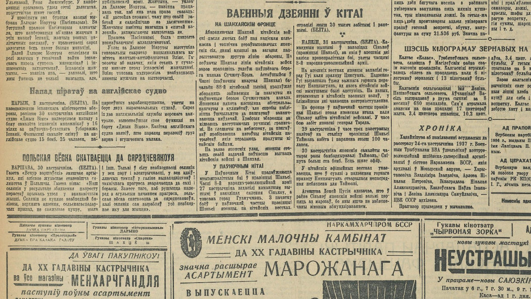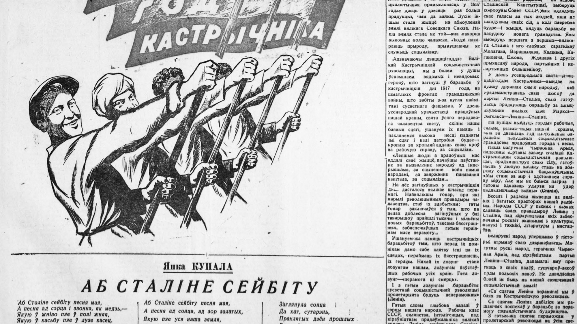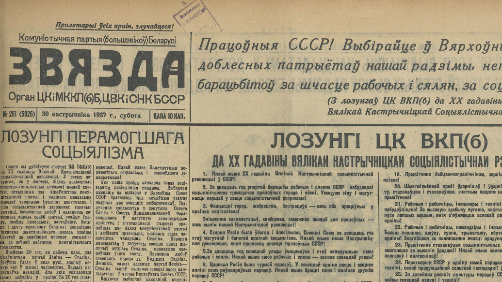 «Не чытайце савецкіх газэт», — раіць герой Міхаіла Булгакава ў вядомым творы «Сабачае сэрца». Каб даведацца, як, паводле афіцыйнай лініі, выглядала жыцьцё ў Беларусі падчас расстрэлаў літаратараў, Свабода зрабіла наадварот і пакапалася ў бібліятэчных архівах. Папулярныя газэты, якія жыхары БССР маглі набыць паміж 28 кастрычніка і 2 лістапада 1937 году, перадаюць атмасфэру, у якой жыло тагачаснае грамадзтва. Але амаль ня згадваюць пра тыя падзеі, зь якімі цяпер асацыюецца восень 1937 году.
