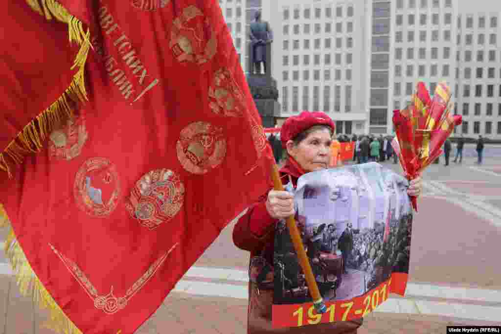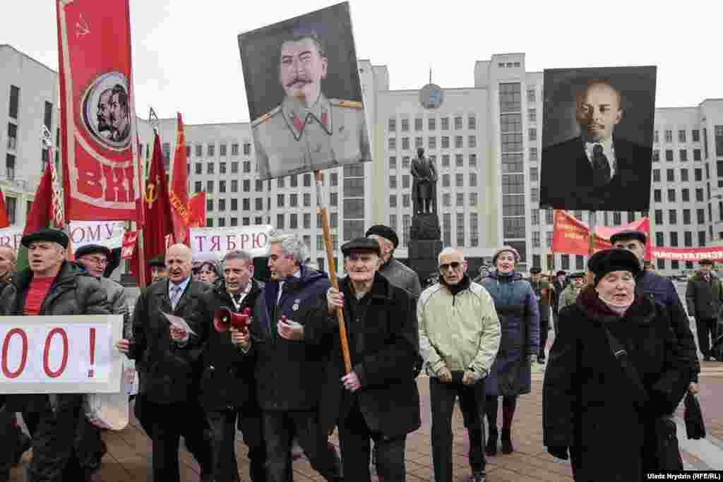 ВІДЭА: З партрэтамі Леніна і Сталіна ў Менску адзначылі 100-годзьдзе бальшавіцкай рэвалюцыі