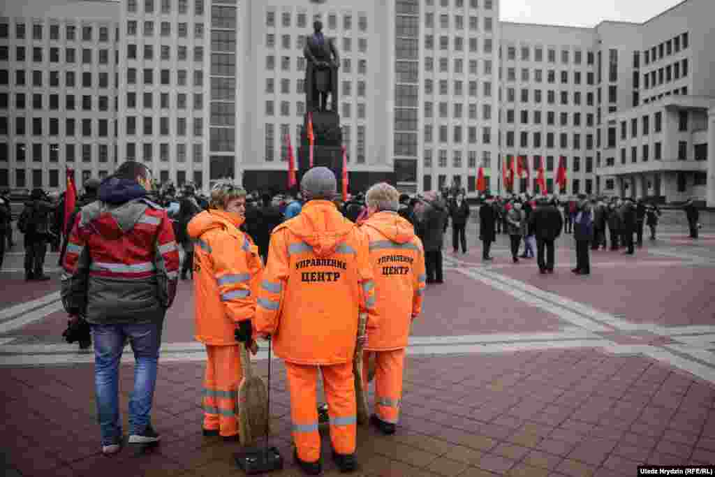 Адзначыць 100-годзьдзе Кастрычніцкай рэвалюцыі на плошчу Незалежнасьці ў Менску прыйшло каля 700 чалавек.