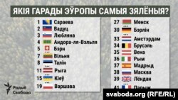 Дзясятку найбольш зялёных эўрапейскіх сталіц складаюць Сараева, Вадуц, Любляна, Андора-ля-Вэльля, Бэрн, Люксэмбург, Вільня, Талін і Манака.