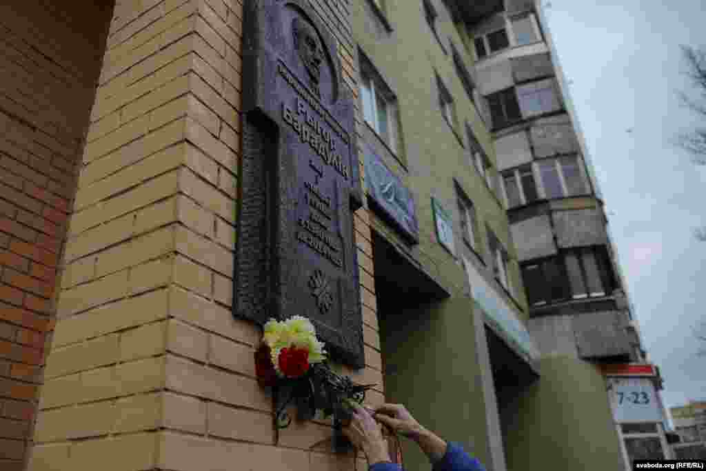 «Штурхальніку» ідэі журналісту Глебу Лабадзенку і старшыні Саюзу мастакоў Беларусі Рыгору Сітніцу апэратыўна ўдалося ўзгадніць усе пытаньні з гарадзкімі ўладамі. На барэльефе пазначана, што ў гэтым доме цягам 1980-2014 гадоў жыў і ствараў народны паэт Беларусі Рыгор Барадулін.