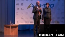«Адмена школьных інспэктараў. Думаю, кожны чалавек у гэтай залі ведае, што прыезд інспэкцыі — гэта тэатар», — пасьля гэтых словаў Кары ў залі зноў загрымелі аплядысмэнты. Большасьць наведнікаў лекцыі былі пэдагогі.