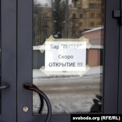 Аб’ява на дзьвярах былой Галерэі «Ў» сьведчыць, што неўзабаве тут зьявіцца бар пад назвай «Питер».