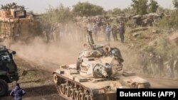 Турцыя назвала гэтую апэрацыю «Аліўкавая галіна». Яе мэта — разьбіць ўзброеныя фарміраваньні ў раёне Афрына, дзе пражывае паўтара мільёна сырыйскіх курдаў. Анкара ў панядзелак узмацніла наступ, а прэзыдэнт Рэджэп Таіп Эрдаган заявіў, што не адмовіцца ад апэрацыі.
