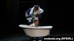 У спэктаклі „Рэвізор“ на выбітнай, выключнай, літаратурнай (беларускай) мове размаўляе толькі Хлестакоў, бо ён са сталіцы — зь Пецярбургу. Ён у трэндзе».