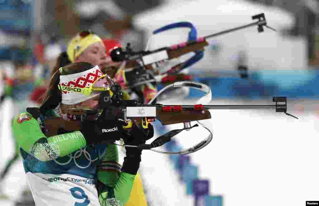 біятляністка Дар'я Домрачава. Яна стала другой у гонцы з масавым стартам.