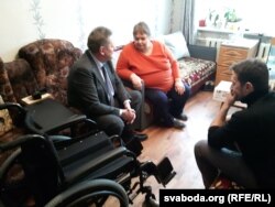 Сёньня амбасадар Ігар Кізім разам з супрацоўнікамі амбасады ўручыў маці героя букет чырвоных ружаў ды перадаў ёй інвалідны вазок.