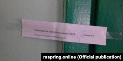 Адзін з чытачоў mspring.online даслаў фота апячатаных дзьвярэй аднаго з выбарчых участкаў Магілёва. Як правіла, дзьверы плямбіруюць пры дапамозе плястыліну або сургуча і пячаткі. Аднак камісія ўчастку № 74 у Магілёве паступіла прасьцей і заклеіла дзьверы скотчам.