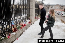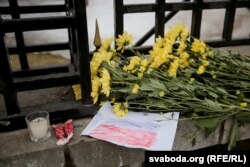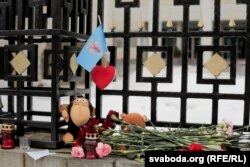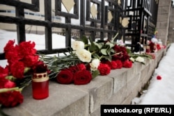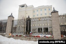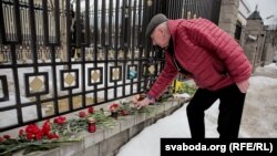 У Менску нясуць кветкі да амбасады Расеі ў памяць пра ахвяраў пажару ў Кемераве. ФОТА