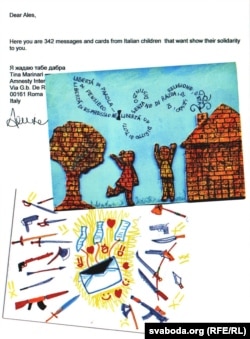 Алесь атрымаў за кратамі шмат самаробных паштовак, малюнкаў дзяцей, арыгінальных тэкстаў, вершаў, тэлеграмаў.