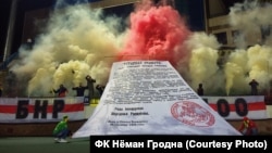 У Гародні фанаты «Нёмана» падчас падчас перапынку ў матчы першага туру чэмпіянату Беларусі зь «Віцебскам» разгарнулі вялізнупю Трэцюю Ўстаўную Грамату, бел-чырвона-белы сьцяг зь лічбай 100 і чырвоныя і белые фаеры.