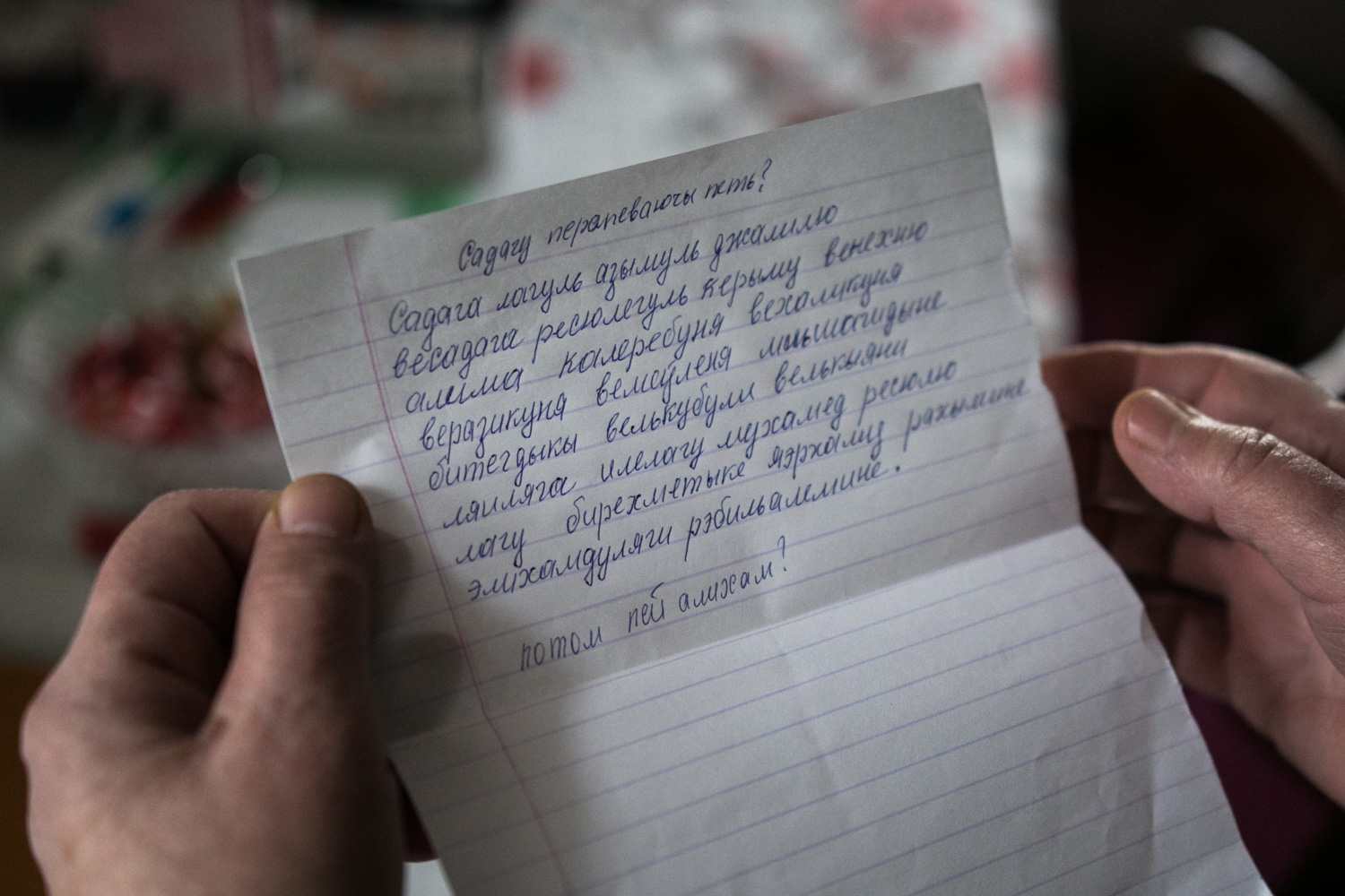 Для сваёй суседкі Ліліі Ібрагімаўны, якая ня ведае арабскай, Роза Мустафаўна напісала «дуайку» (зварот да Алага) кірылічнымі літарамі.