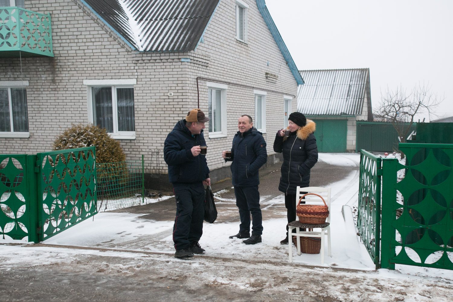 «Сваякі зь Менску вось адмыслова прывезьлі да нас сваю дачку, — кажа Вольга з вуліцы Дружба, якая павяла свайго 5-гадовага сына зьбіраць пачастункі. — Для іх гэта такая забава. Яна першы раз у жыцьці сёлета пойдзе».
