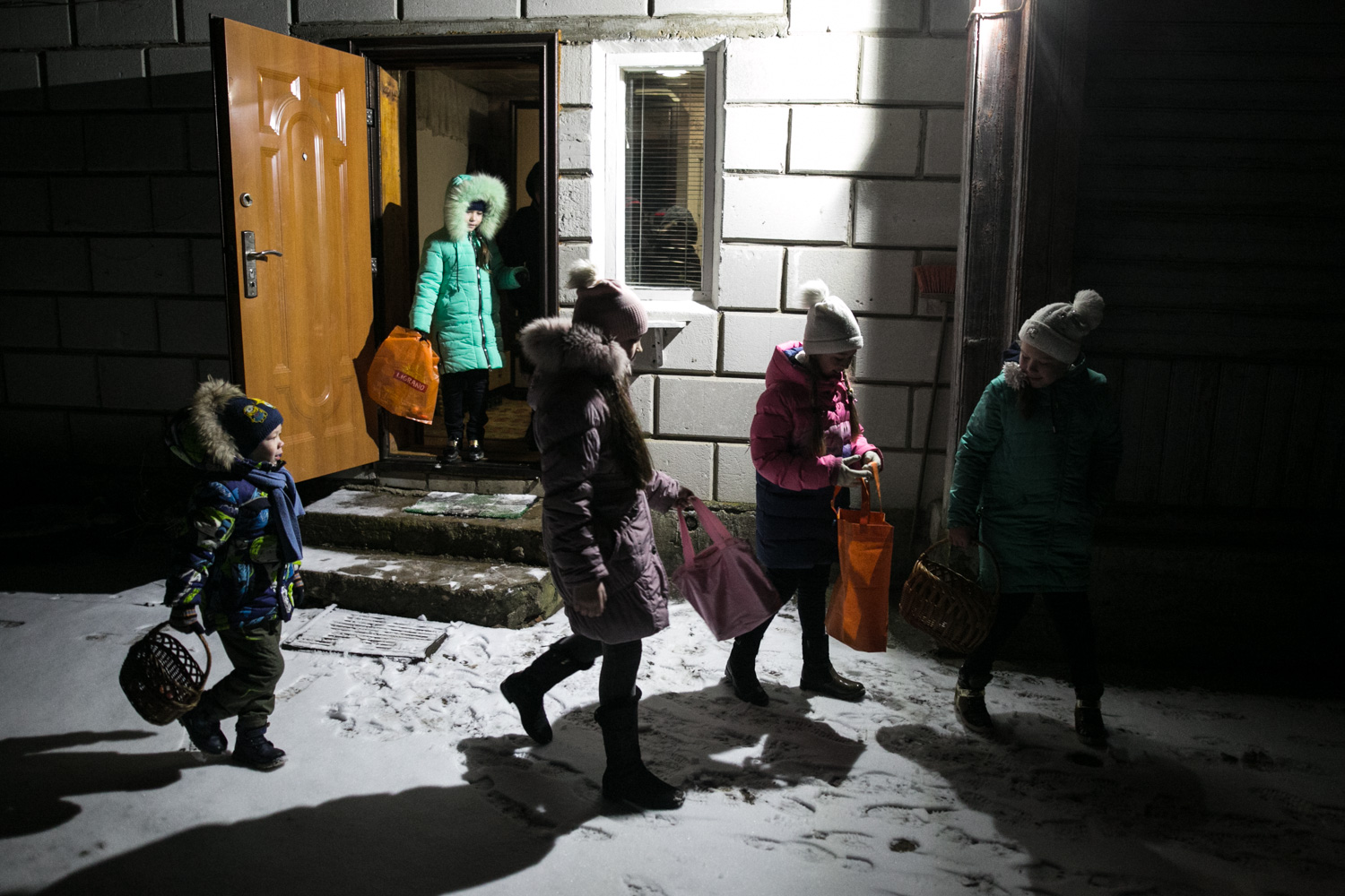 Пятніца, 30 сакавіка, 5-я гадзіна раніцы. У хатах на вуліцы Савецкай у Іўі праз адну гарыць сьвятло. Уначы выпаў сьнег і на дарозе відаць сьвежыя сьляды. Гэта першыя дзеці ўжо выйшлі зьбіраць пачастункі.