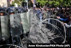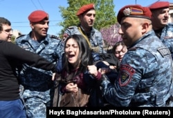 Удзельнікі шэсьця на чале з Ніколам Пашыньянам прайшлі празь некалькі паліцэйскіх кардонаў. Яны падымалі ўгору рукі, паказваючы, што ня маюць намеру ўступаць у сутыкненьні з паліцыяй і што іх акцыя мірная.