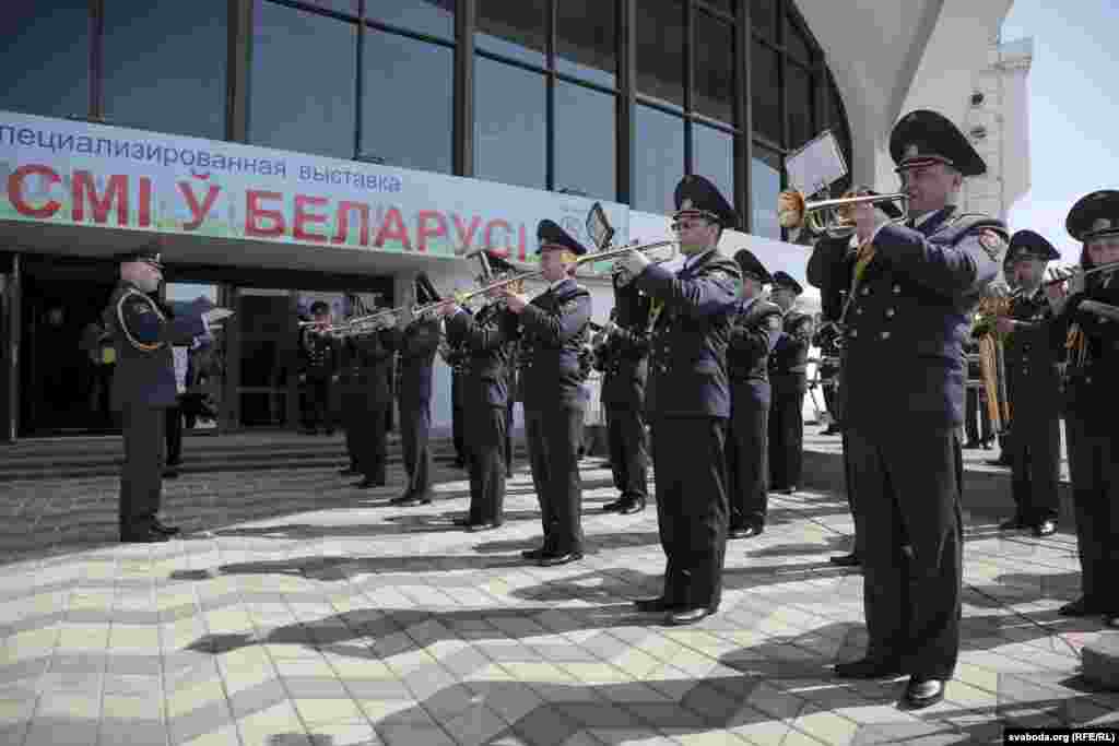 З вайскоўцамі і барабаншчыкамі адкрылася выстава «СМІ ў Беларусі»