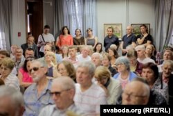 У музэйнай залі сабраліся некалькі дзясяткаў чалавек, для каго імя Скарыны мае амаль сакральнае значэньне. Невялікая заля ня здолела зьмясьціць усіх ахвотных, некаторым давялося сачыць за падзеямі з вэстыбюлю.