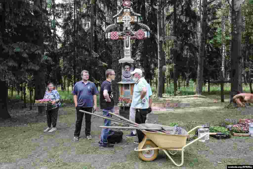 На тэрыторыі Курапацкага мэмарыялу сёньня прайшла талака. Людзі, якія прыйшлі сюды, прыбіралі тэрыторыю, саджалі кветкі, прывезеныя фэрмэрам Уладзімерам Матусевічам. Актывістка БХД Валерыя Чарнаморцава правяла экскурсію па мэмарыяле.