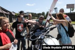 Трое матацыклістаў спрабавалі сёньня патрапіць у рэстарацыю «Поедем поедим» каля Курапатаў. Сярод іх быў чалавек, якога пратэстоўцы прынялі за Барыса Сурыса — аднаго з уладальнікаў. Пачалася патасоўка з актывістамі, матацыклістам не далі праехаць на тэрыторыю рэстарацыі і яны зьехалі.