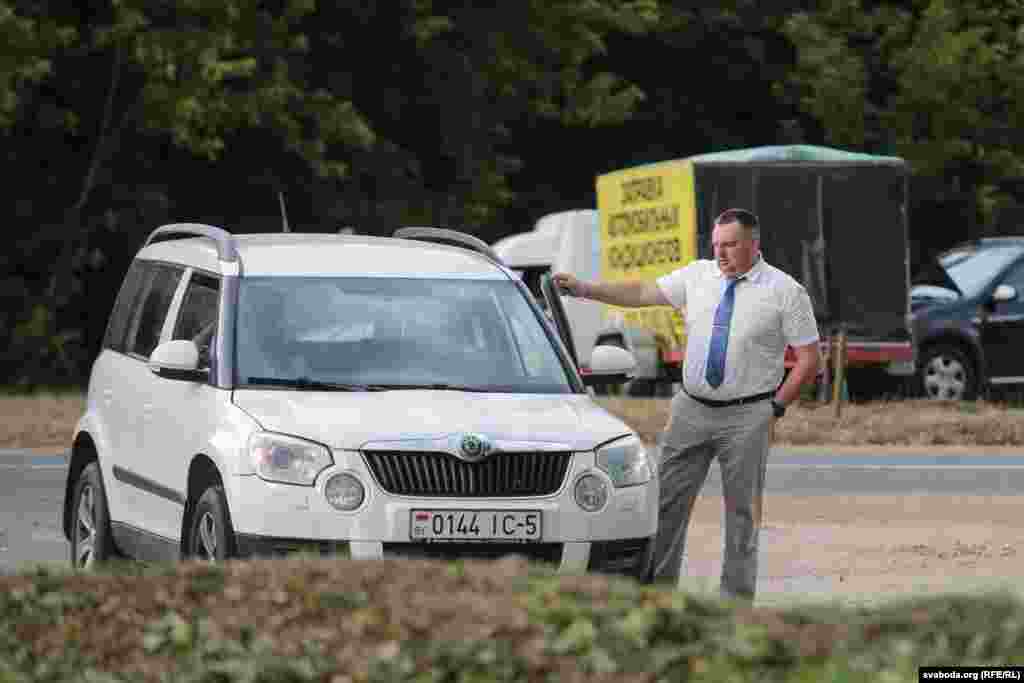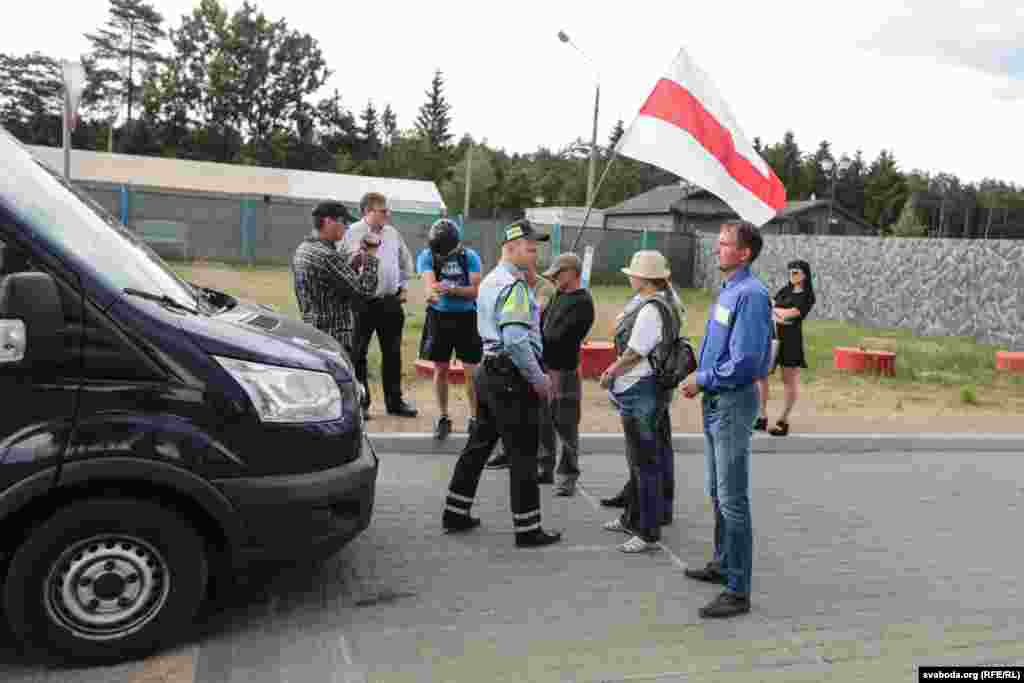 Супрацоўнікі ДАІ складаюць пратаколы на атывістаў