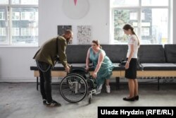— У нашым былым памяшканьні ў цэнтры Менску мы сутыкнуліся з тым, што ёсьць праблема — гэта інклюзіўнасьць, адкрытасьць наагул культурных прастораў для людзей з рознымі фізычнымі праблемамі. Таму з самага першага дня, калі мы плянавалі сваю працу на новым месцы, мы вырашылі, што найперш павінны зрабіць сапраўды безбар’ернае асяродзьдзе. І першы праект, зь якім мы адкрываемся — гэта выстава «Без выключэньня. У працэсе».