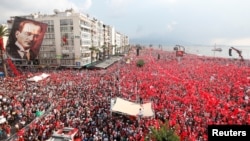 21 чэрвеня ў прыморскім горадзе Ізьмір адбылося грандыёзнае шэсьце і мітынг у падтрымку Мухарама Інджэ — галоўнага праціўніка дзейнага прэзыдэнта Рэджэпа Эрдагана на датэрміновых прэзыдэнцкіх выбарах 24 чэрвеня.