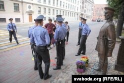 Каля статуі гарадавога насупраць МУС зьявілася ЛГБТ-клюмба. Фатафакт
