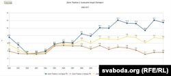 Але пра Ўкраіну чамусьці ніхто ня кажа, як пра эканамічную альтэрнатыву Расеі. Хаця апошні графік у нечым тлумачыць, чаму ў сэнсе палітыкі Беларусь адносна Ўкраіны ня цалкам ідзе ў фарватэры Расеі. 7% ад таваразвароту — гэта заўважная лічба. Прынамсі, для таго, каб дэманстраваць прыязнасьць. Кітайцам дэманструюць і за меншае.