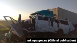 Як паведамілі Свабодзе ў Нацыянальнай паліцыі Ўкраіны, кіроўца мікрааўтобуса Mercedes-Benz ня справіўся з кіраваньнем — аўтобус сутыкнуўся з прыпаркаваным на ўзбочыне грузавым аўтамабілем.