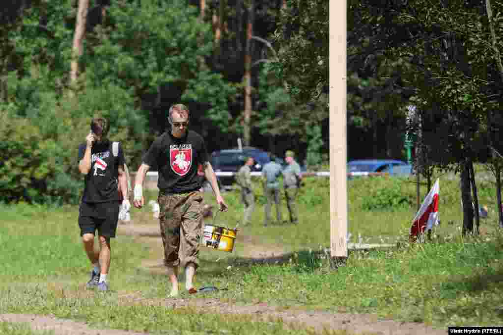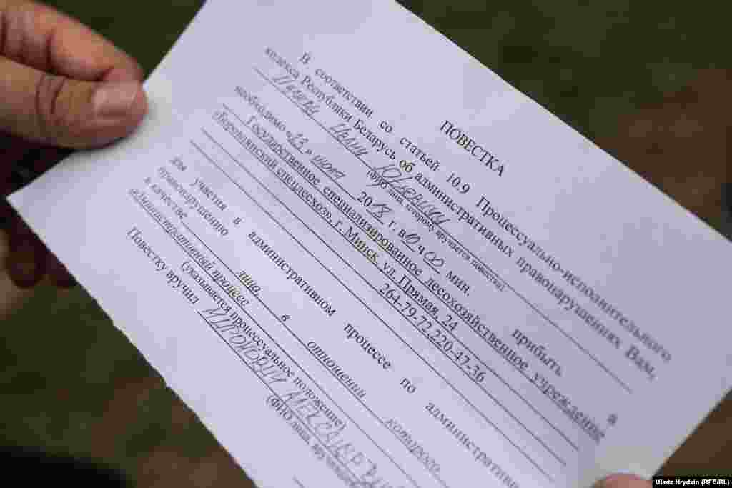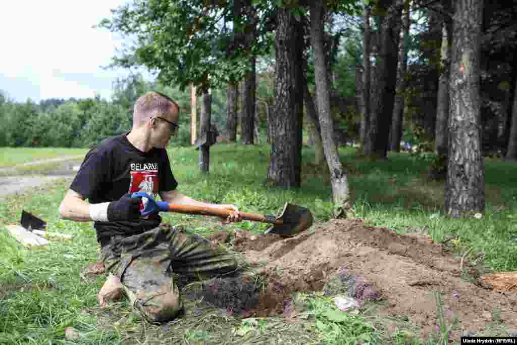 Актывіст Зьміцер Дашкевіч з паплечнікамі ўсталявалі ў Курапатах 12 новых крыжоў. Кіраўніцтва Бараўлянскага спэцлясгасу прыехала ў Курапаты і заявіла, што актывісты парушаюць закон. Пратакол складаў дырэктар лясгасу Аляксандар Мірановіч.