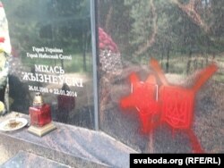 На могілках у вёсцы Сьцяг Працы Гомельскага раёну невядомыя апаганілі помнік беларускага Героя Ўкраіны Міхася Жызьнеўскага.