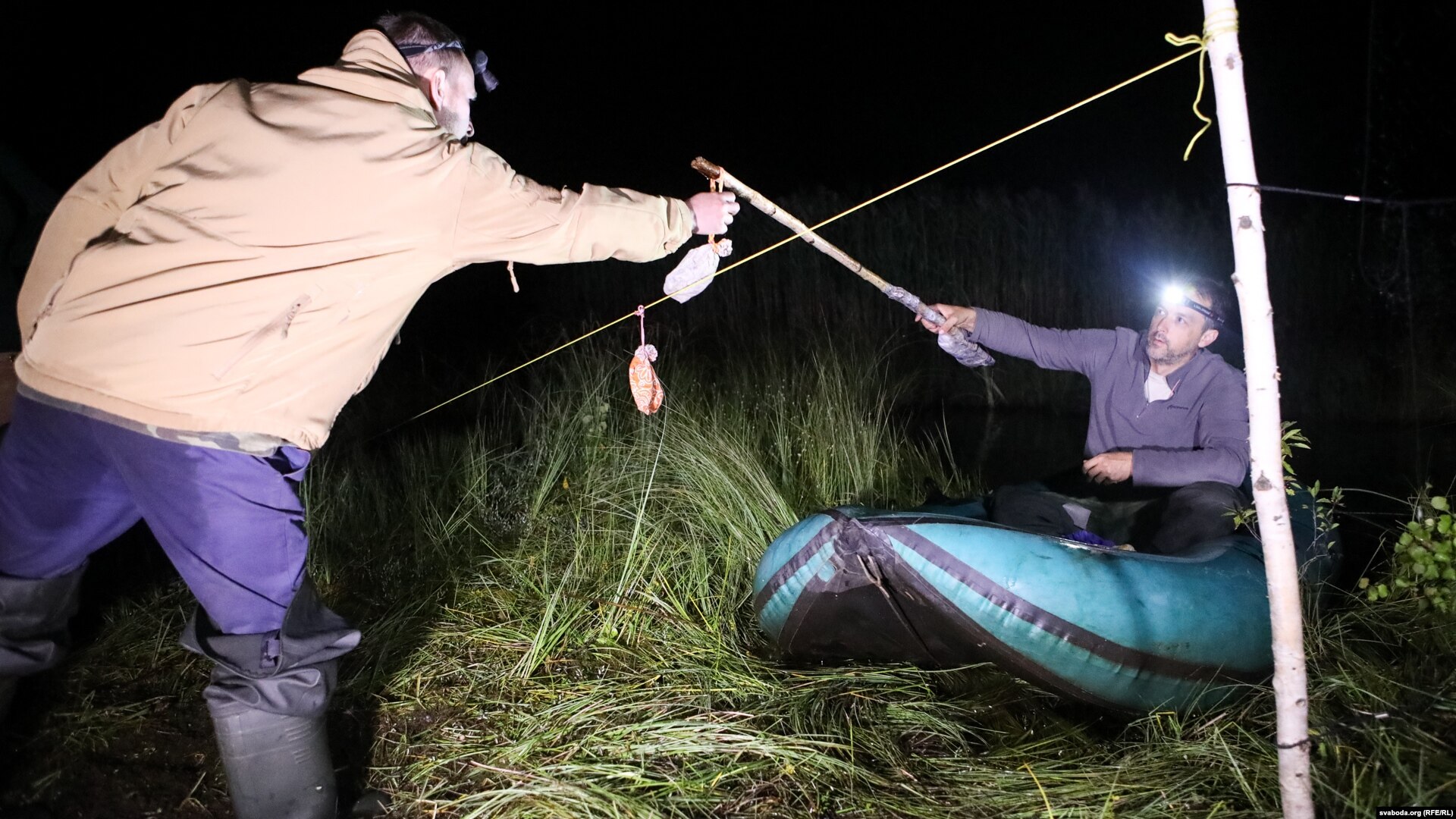 Самая важная праца пачынаецца з надыходам цемры. Кажаны ўдзень сьпяць і толькі ўвечары выпаўзаюць з дуплаў і пачынаюць паляваць, лётаюць на вадапой на балоты. Сеткі ставяцца акурат каля адкрытай вады. Па чарзе навукоўцы і валянтэры дзяжураць у лодцы да другой ці трэцяй гадзіны ночы. Як толькі кажан трапляе ў сетку, яго вымаюць і кладуць у тканы мяшэчак.
